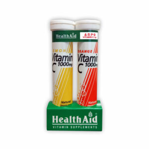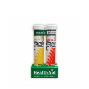 Health Aid – Vitamin C 1gr λεμόνι – 20tabs + 1 Συσκευασία Πορτοκάλι των 20tabs ΔΩΡΟ
