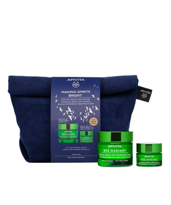 Ένα ολοκληρωμένο σετ περιποίησης προσώπου για Μείωση των Σημαδιών Γήρανσης & Ξεκούραστη Όψη με τη BEE RADIANT Κρέμα-Gel για Σημάδια Γήρανσης & Ξεκούραστη Όψη Ελαφριάς Υφής και την BEE RADIANT Gel-Balm Νύχτας για Λείανση & Αναζωογόνηση.