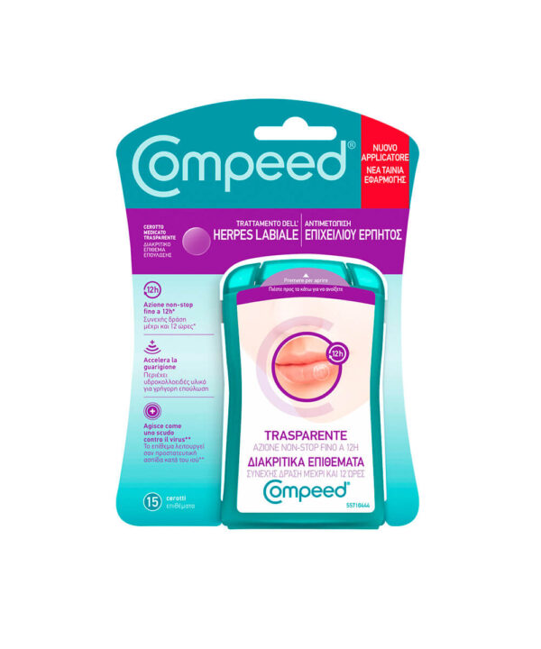 Το Διακριτικό Επίθεμα για τον Επιχείλιο Έρπη COMPEED® περιέχει ενεργή γέλη υδροκολλοειδούς τεχνολογίας η οποία επιταχύνει τη διαδικασία της επούλωσης και εμποδίζει τη δημιουργία εφελκίδας. Αρχίζει να δρα ήδη από τα πρώτα σημεία εμφάνισης και συνεχίζει σε όλα τα στάδια εκδήλωσης του επιχείλιου έρπητα με στόχο να εμποδίσει την επιδείνωσή του. Ο διακριτικός σχεδιασμός του συμβάλλει στην προστασία του επιχείλιου έρπητα. Επιπλέον, δρα ως αντιική ασπίδα και μειώνει τον κίνδυνο επιμόλυνσης.