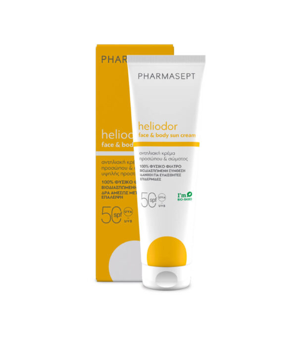 Αντηλιακή κρέμα για πρόσωπο & σώμα, υψηλής προστασίας SPF 50, με 100% φυσικό φίλτρο από οξείδιο του ψευδαργύρου σε non–nano μορφή, που δεν προκαλεί φωτοαλλεργίες και φωτοτοξικότητα.