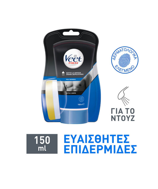 H Veet for Men κρέμα αποτρίχωσης για ανδρικές ευαίσθητες επιδερμίδες είναι ιδανική για την αποτρίχωση του σώματος των ανδρών, για χρήση στο ντούζ.