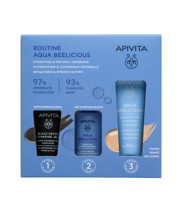 Apivita – Promo Αqua Beelicious Ενυδάτωση & Φυσική Κάλυψη με Αqua Beelicious Ενυδατική Κρέμα με Χρώμα Ελαφριάς Υφής SPF30 & Δώρο Αqua Beelicious Ενυδατικό Τόνερ – 50ml & Black Dettox Gel Καθαρισμού – 15ml