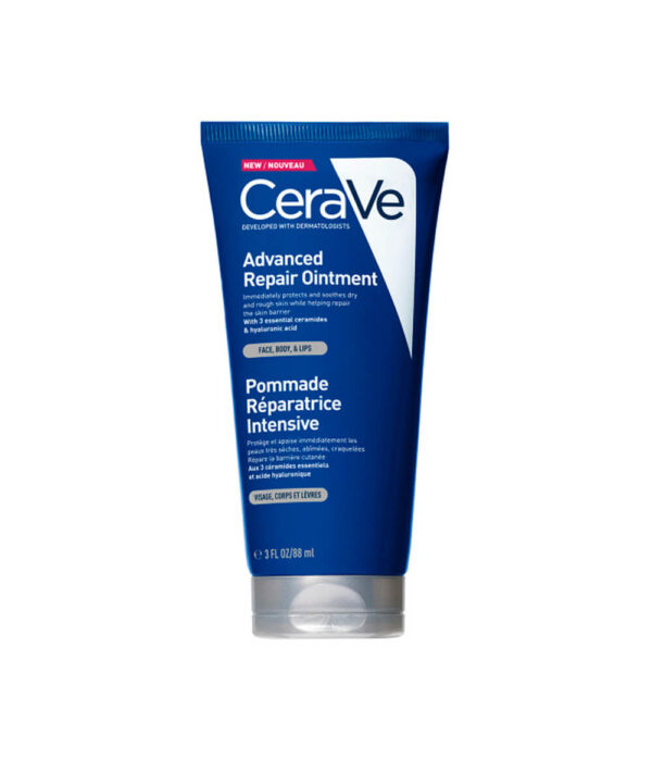 CeraVe Advanced Repair Ointment είναι μία επανορθωτική αλοιφή για πρόσωπο, σώμα και χείλη. Προστατεύει και ανακουφίζει άμεσα το πολύ ξηρό και τραχύ δέρμα. Βοηθάει στην αποκατάσταση του επιδερμιδικού φραγμού. Με 3 απαραίτητα ceramides & υαλουρονικό οξύ.