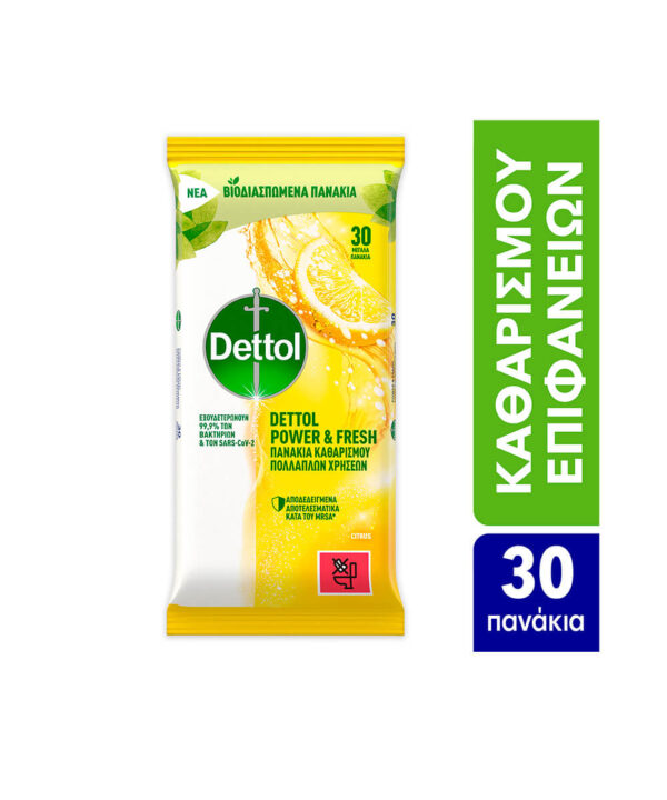 Τα υγρά απολυμαντικά πανάκια καθαρισμού επιφανειών Dettol αποδεδειγμένα σκοτώνουν το 99,9% των βακτηριδίων. Το αυτοκόλλητο κλείσιμο τους προσφέρει αεροστεγή προστασία διατηρώντας την απαιτούμενη υγρασία. Είναι ιδανικά για την απολύμανση οποιασδήποτε επιφάνειας ,όπως τις επιφάνειες προετοιμασίας φαγητού(πχ ξύλα κοπής) και εξοπλισμός μωρών (πχ καρεκλακια). Είναι απαραίτητα για κάθε οικογένεια και σπίτι καθώς αποδεδειγμένα απομακρύνουν το 90% των αλλεργιογόνων, όπως η γύρη και τα ακάρεα οικιακής σκόνης. Σε μία πρακτική και εύκολη στη χρήση συσκευασία διασφαλίζουν την απολύμανση με έναν γρήγορο κι υγιεινό τροπο. Με άρωμα Λεμόνι.