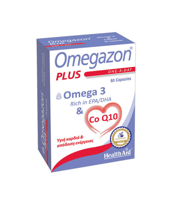 Το Omegazon Plus της HealthAid αποτελεί μια πρωτοποριακή σύνθεση από υψηλής καθαρότητας ιχθυέλαια, πλούσια σε Ω3 (EPA/DHA) και Συνένζυμο Q10, συνδυάζοντας τις ευεργετικές ιδιότητες και των δύο συστατικών όσον αφορά την φροντίδα και την τόνωση της καρδιάς, του κυκλοφορικού και του μυϊκού συστήματος. Ιδανικό για όσους λαμβάνουν παράλληλα αγωγή για υπερλιπιδαιμία (στατίνες), καθώς αυτές μειώνουν την παραγωγή του συνενζύμου από τον οργανισμό, με αποτέλεσμα συμπτώματα κόπωσης και μυαλγιών.