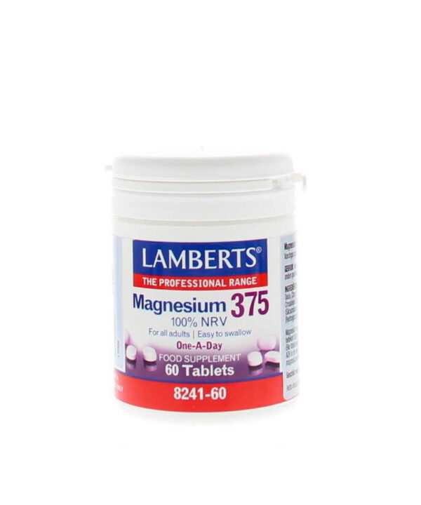 Το Magnesium 375 της Lamberts αποτελεί ένα μοναδικό σκεύασμα, καθώς περιέχει τις 4 σημαντικότερες μορφές αλάτων μαγνησίου (κιτρικό, ανθρακικό, οξείδιο και υδροξείδιο του μαγνησίου), διασφαλίζοντας ότι με 1 ταμπλέτα ημερησίως λαμβάνεται το 100% της Συνιστώμενης Ημερήσιας Πρόσληψης Μαγνησίου (375mg).