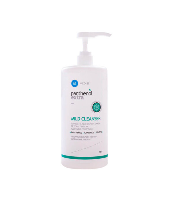 Το Panthenol Extra Mild Cleanser είναι ένα ιδιαίτερα απαλό καθαριστικό, με ήπια συστατικά πολύ φιλικά προς το δέρμα όπως Πανθενόλη, Χαμομήλι και το ήπιο αποσμητικό Sensiva, που καθαρίζει απαλά την επιδερμίδα, χωρίς να την αφυδατώνει και να την ερεθίζει.