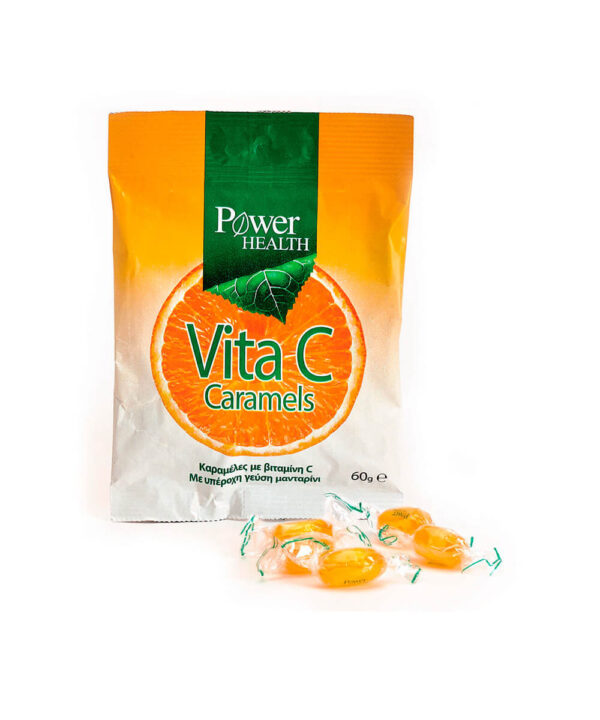 Οι Power Health Vita C Caramels είναι καραμέλες με βιταμίνη C. Η βιταμίνη C συμβάλλει: