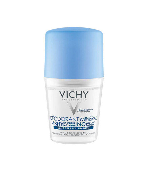 Συνδυασμός βιταμίνης Β5, γλυκονικού ψευδάργυρου και ιαματικού μεταλλικού νερού Vichy με 15 μεταλλικά στοιχεία και ιχνοστοιχεία για 48ωρη προστασία.